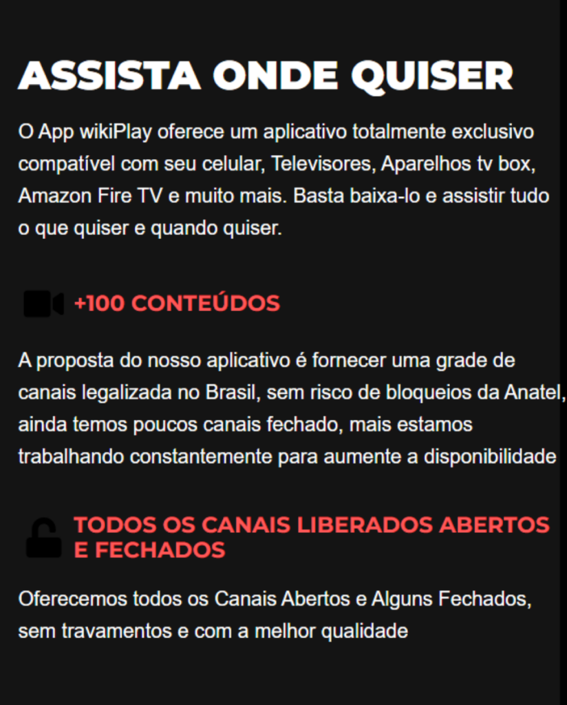 Com um sistema wikiPlay, você começa utilizar o serviço, logo após a finalização da compra, você receberá um E-mail e WhatsApp, com as informações de acesso.